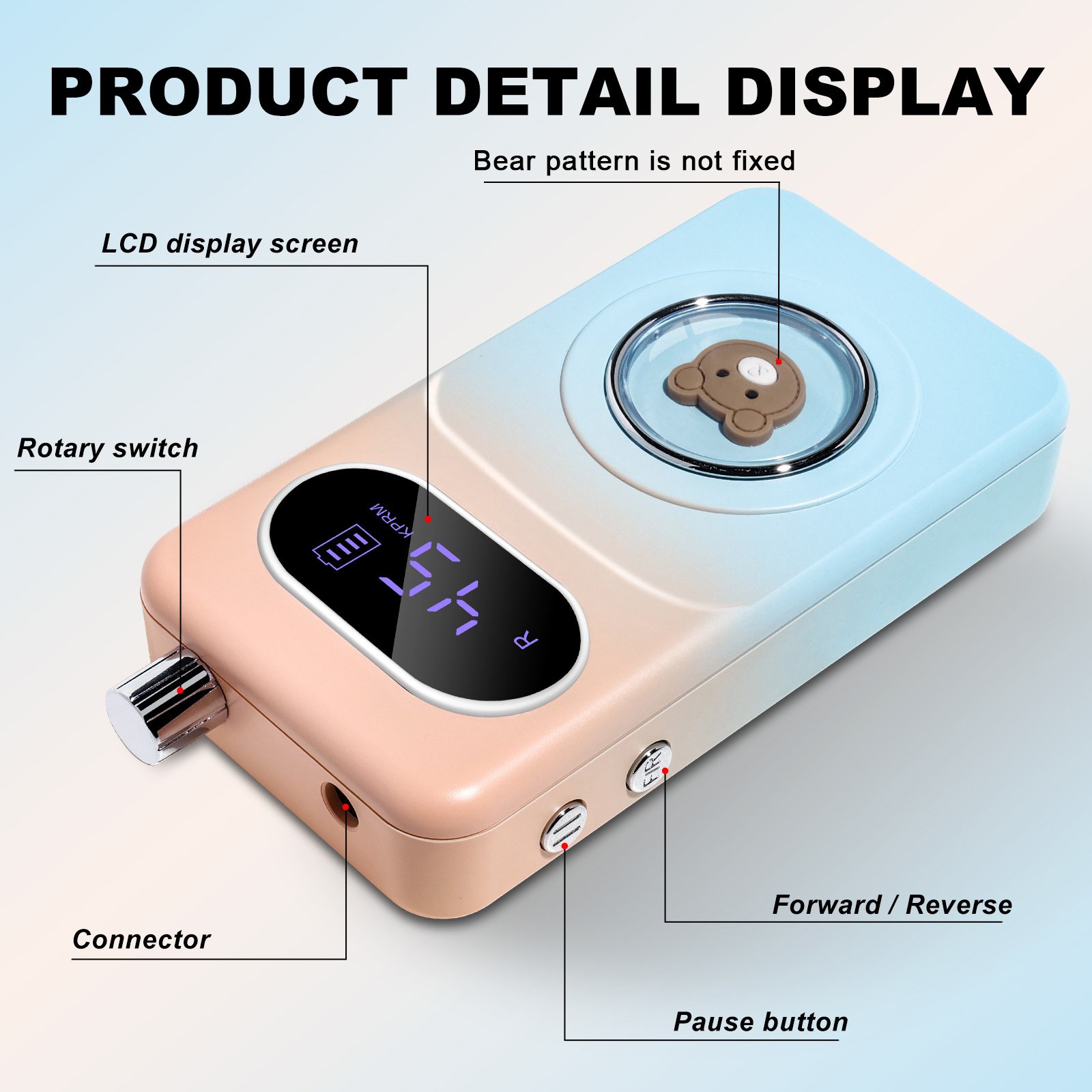• LCD Smart Screen : The LCD smart screen can clearly display the speed, rotation direction and remaining power so you can operate as needed.